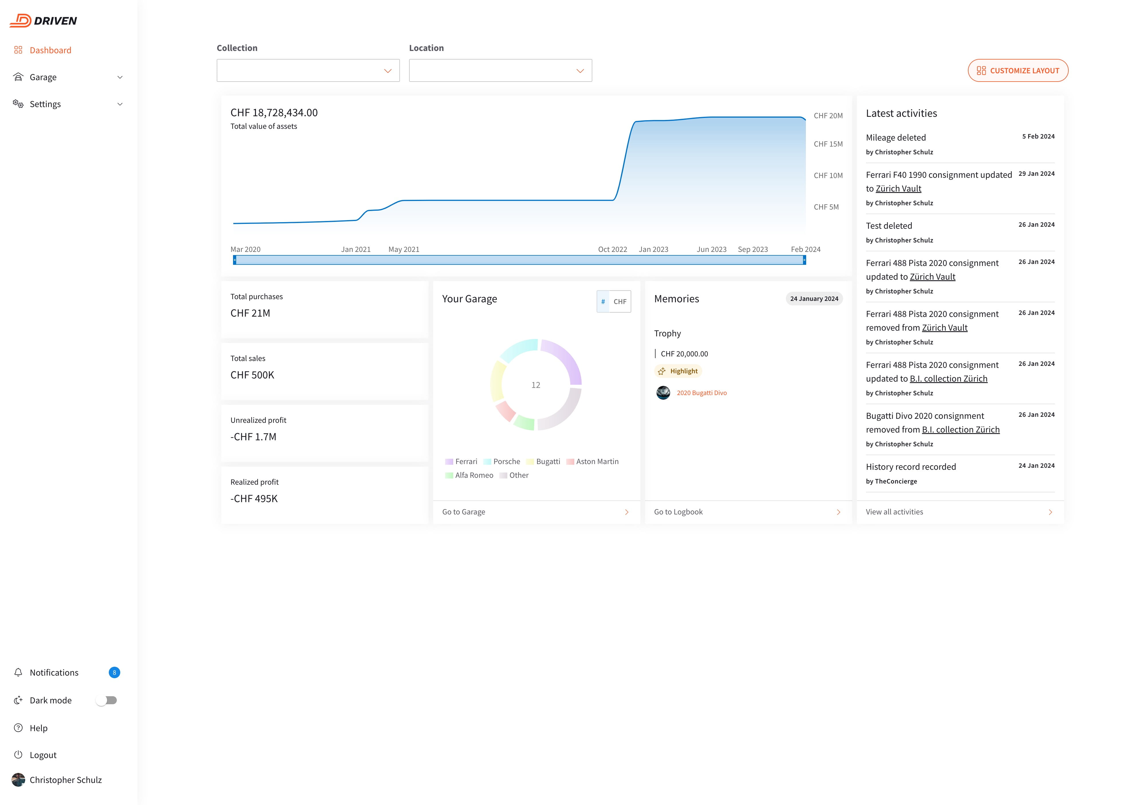 Users can customize the look and information density of their dashboard. It is possible to have different layouts for mobile, tablet, regular and bigger monitors.