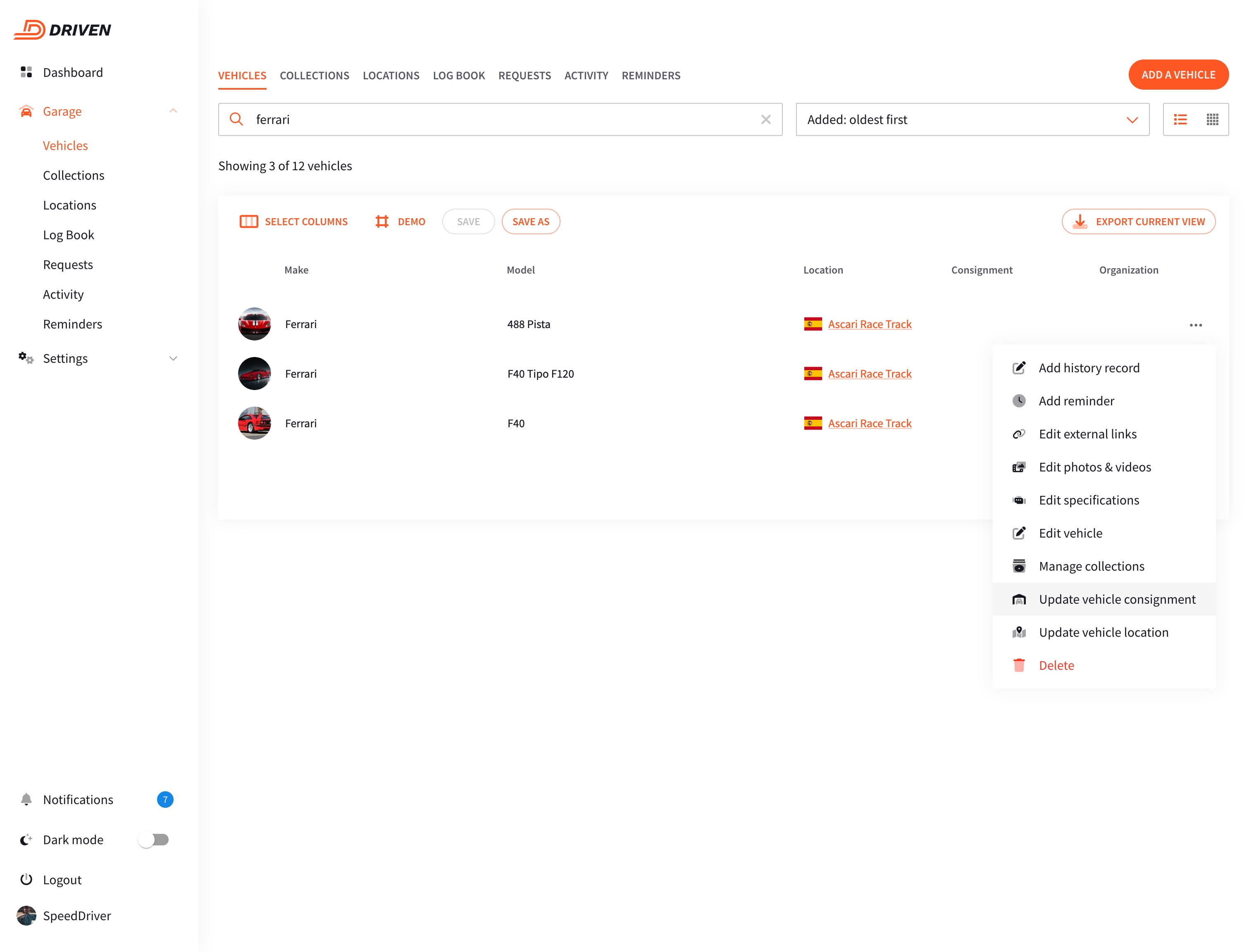 When you are client of an organization, you can select which vehicles their concierges can manage.